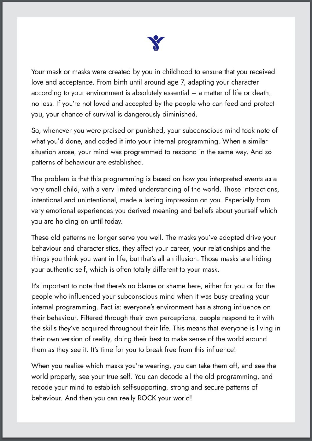 Exclusive offer for Subconscious Advantage Training participants. Learn which of the 23 subconscious masks apply to you!
